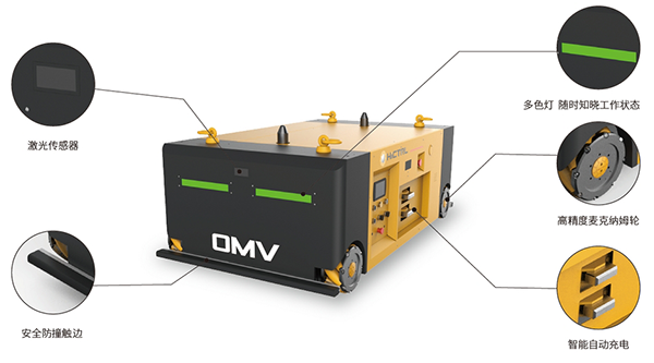 AGV升級換代產(chǎn)品。新一代生產(chǎn)流水線搬運(yùn)OMV,讓OMV路線更狹窄更精確,獨(dú)特的90度側(cè)移功能,讓貨物與產(chǎn)線的最后一米無縫銜接。