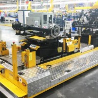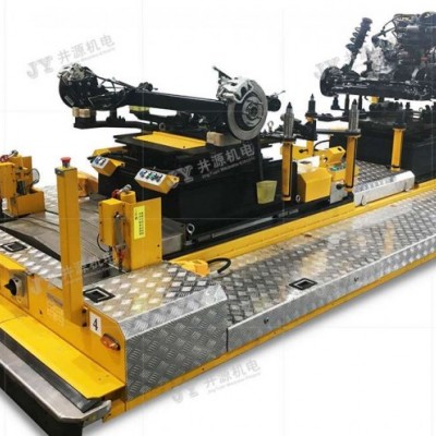 該設備廣泛運用于汽車行業發動機及后橋合裝,能實現前進、后退、轉彎、平移等運行方式。