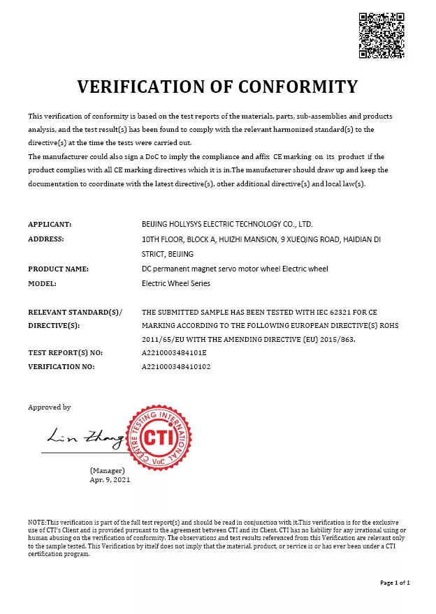 RoHS是綠色健康的行使者,和利時電機公司研發的低壓伺服電動輪、低壓伺服驅動器均已通過歐盟認證機構電氣電子產品檢測,均符合歐盟市場健康環保標準。通過RoHS認證,有利于產品順利的進入歐盟市場,有助于提升歐洲品牌競爭力。