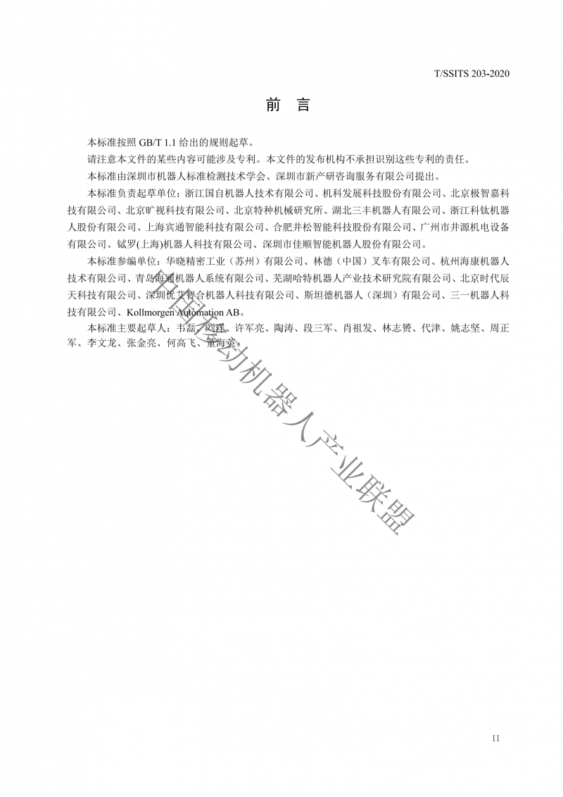 本標(biāo)準(zhǔn)參編單位∶華曉精密工業(yè)(蘇州)有限公司、林德中國)叉車有限公司、杭州海康機(jī)器人技術(shù)有限公司、青島梅通機(jī)器人系統(tǒng)有限公司、蕪湖哈特機(jī)器人產(chǎn)業(yè)技術(shù)研究院有限公司、北京時代辰天科技有限公司、深圳優(yōu)芝智合機(jī)器人科技有限公司、斯坦德機(jī)器人(深圳)有限公司、三一機(jī)器人科技有限公司、KollmorgenAutomation AB。