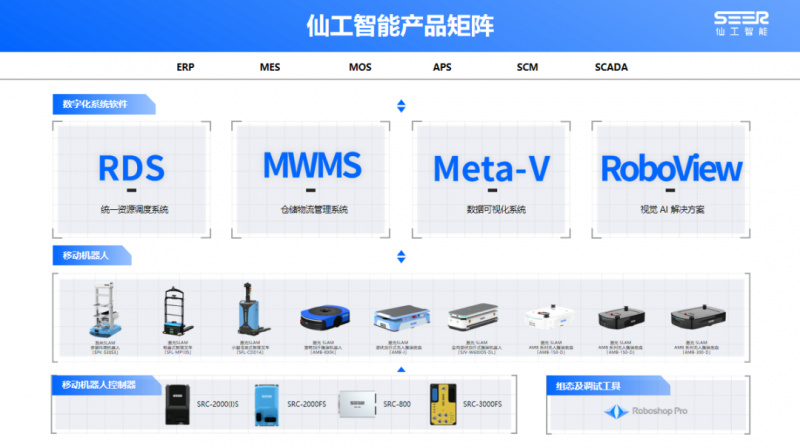 為了解決客戶最核心的痛點,仙工智能智能、高效、可靠、易用的端到端工業物流解決方案,涵蓋軟件產品統一資源調度系統 RDS,倉儲物流管理系統 MWMS,數據可視化系統 meta-V,視覺 AI 解決方案;硬件產品 SRC 移動機器人控制器、以及基于 SRC 的各類移動機器人,如激光 SLAM 自動叉車,激光 SLAM 料箱機器人,頂升機器人、復合機器人等。各類客戶都可以根據自己的需要從其中獲取理想且滿足定制要求的軟硬件產品及解決方案。