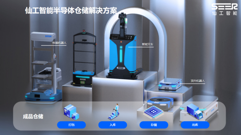 仙工智能針對半導(dǎo)體倉儲的解決方案擁有天然優(yōu)勢,因?yàn)橄晒ぶ悄墚a(chǎn)品類型眾多,涵蓋控制器、移動機(jī)器人底盤、料箱機(jī)器人和智能叉車,能夠?qū)崿F(xiàn)整個半導(dǎo)體打包入庫存儲以及出庫場景全覆蓋。