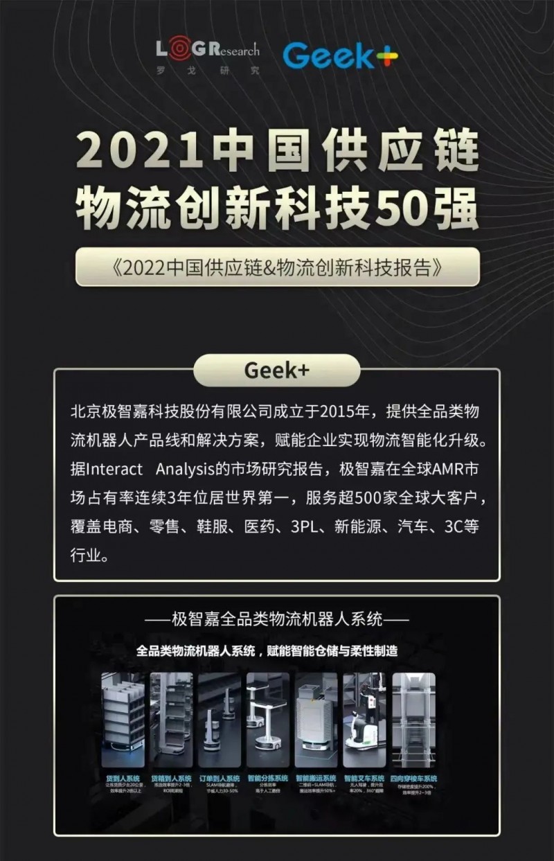 近日,物流商業(yè)智庫羅戈研究正式發(fā)布了《2022中國供應鏈&物流創(chuàng)新科技報告》,并在報告中公布了2021中國供應鏈物流創(chuàng)新科技50強。極智嘉“一站式RoboShuttle+P40全流程組合方案”再獲行業(yè)認可,憑借卓越的產品技術和方案的實際商業(yè)價值,承攬羅戈研究“2021中國供應鏈物流創(chuàng)新科技50強”,為行業(yè)提供可借鑒的智慧物流應用學習樣本。