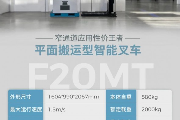 「更高ROI,更強性能」窄通道應用性價王者智能叉車F20MT全新升級!