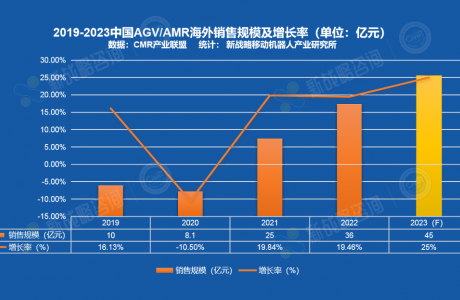 2023年中國AGV/AMR銷售規模212億,銷售數量125000臺。