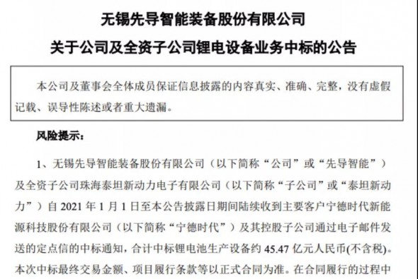 本次中標有利于公司及子公司在新能源電池領域的業務拓展,提高公司收入規模及盈利能力。