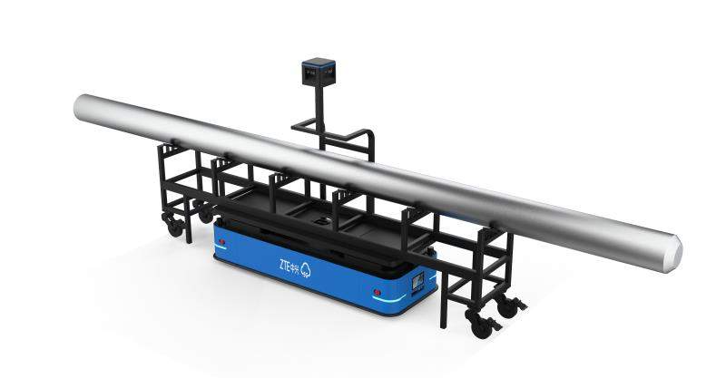 因此,瞄準行業及場景的痛點,中興通訊接連創新多款產品,著力打造5G+智能廠區物流解決方案。其中在光伏晶棒轉運場景中,中興通訊針對運輸晶棒長短不一、識別難度高、車間環境復雜等痛點,推出全向式移動機器人產品ZXAGV_T2000,從以下多個方面解決難題:
