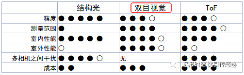 綜合到移動(dòng)機(jī)器人在非結(jié)構(gòu)化場(chǎng)景中的應(yīng)用,對(duì)照上表的性能對(duì)比可以看到主動(dòng)雙目深度相機(jī)無(wú)疑是最好的選擇。首先雙目原理兼顧了室內(nèi)室外場(chǎng)景,避免了多機(jī)的干擾,對(duì)于環(huán)境具有最高的適應(yīng)性;同時(shí)在測(cè)量范圍和測(cè)量精度上也具有非常好的性能兼顧;最后雙目系統(tǒng)可以非常好地平衡成本,做到價(jià)格可控。