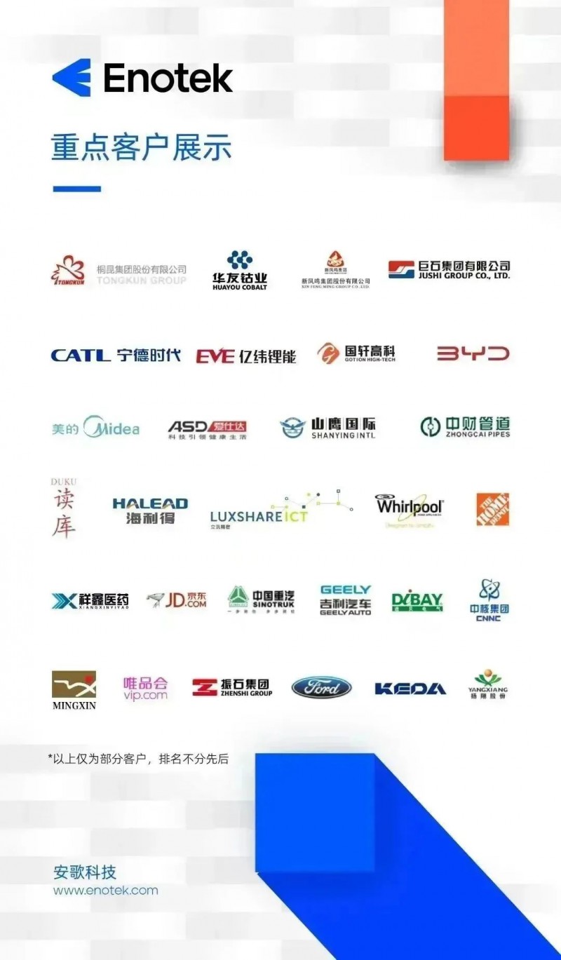 除此之外,安歌科技至今已為桐昆股份、中國(guó)巨石、中國(guó)重汽、國(guó)軒高科、比亞迪等化纖、玻纖、新能源、新材料、汽車零配件、造紙、電子電器、食品飲料等打造了100+案例,收獲了來自各領(lǐng)域頭部企業(yè)的認(rèn)可。