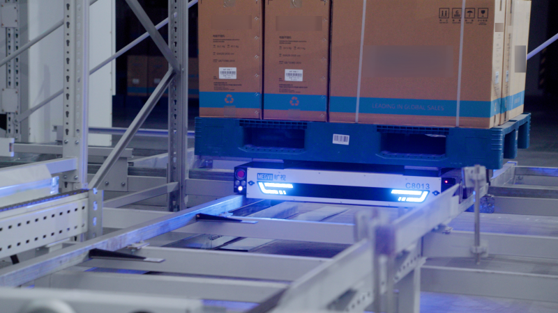 運(yùn)行于縫紉機(jī)成品“智能密集庫(kù)”中的曠視四向穿梭車