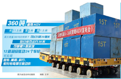 朗譽機器人360噸重載AGV近期成功下線,該產(chǎn)品能實現(xiàn)升降行程300mm,最大承載360噸,最大運行速度30m/min,爬坡能力5°,續(xù)航時間大于8小時,充電時間只需要3小時,控制方式為遙控駕駛,后期可以做無人駕駛升級,防護等級為IP66,并獲得歐洲CE安全認證的重載AGV。