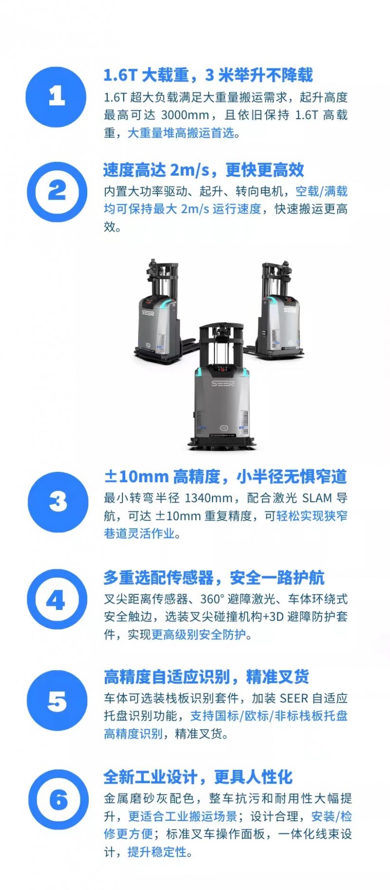 新品推介丨激光 SLAM 堆高式智能叉車 SFL-CDD16