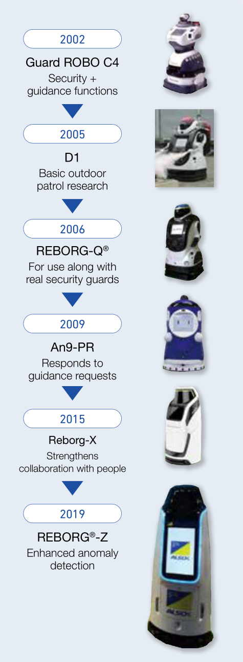 ALSOK 成立于1965年7月,是日本的一家大型安保公司。該公司早在1982年就預(yù)見(jiàn)到,未來(lái)將會(huì)面臨老齡化社會(huì)引起的勞動(dòng)力不足問(wèn)題,開(kāi)始著手研發(fā)自主安保機(jī)器人,以提高勞動(dòng)密集型的駐扎保安服務(wù)效率。