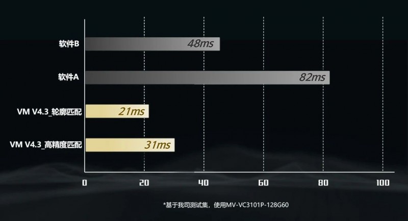 經過優化的匹配算法,相較于VM4.2及市面上主流視覺軟件的匹配效率有明顯優勢。