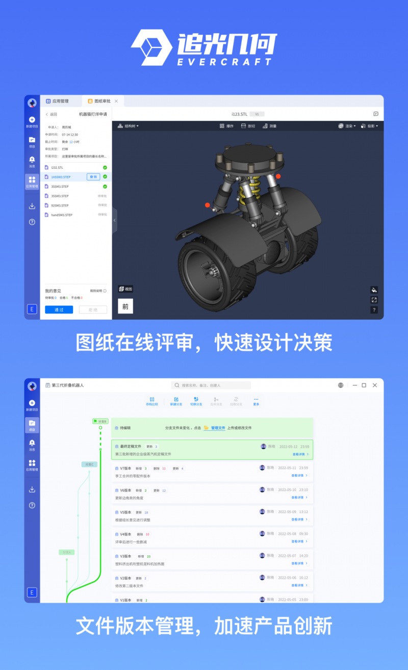 去年在做跨部門的圖紙評審時,因為專業的 CAD 軟件成本過高,其他部門的伙伴無法參與評審。那時候就在網上找到追光幾何這款產品,剛好我們既需要在線看圖,也有版本管理相關需求。