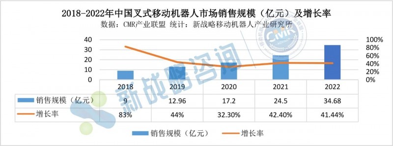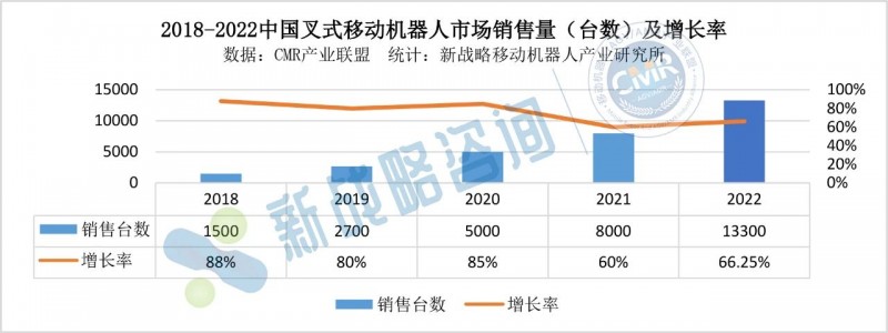根據CMR產業聯盟數據,新戰略移動機器人產業研究所統計,2022年,SLAM導航(激光+視覺)的無人叉車占比首次超過了激光有反射板叉車,成為市場應用主流,占比為51%,激光反射板無人叉車增速不如SLAM導航產品,占比下降,為41.22%。