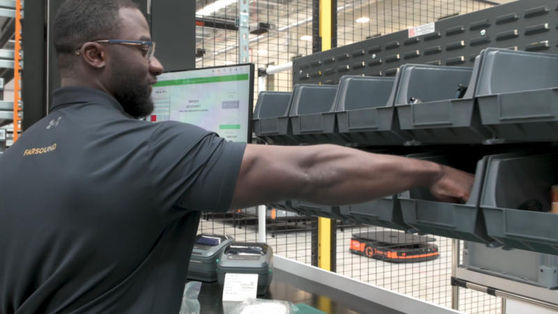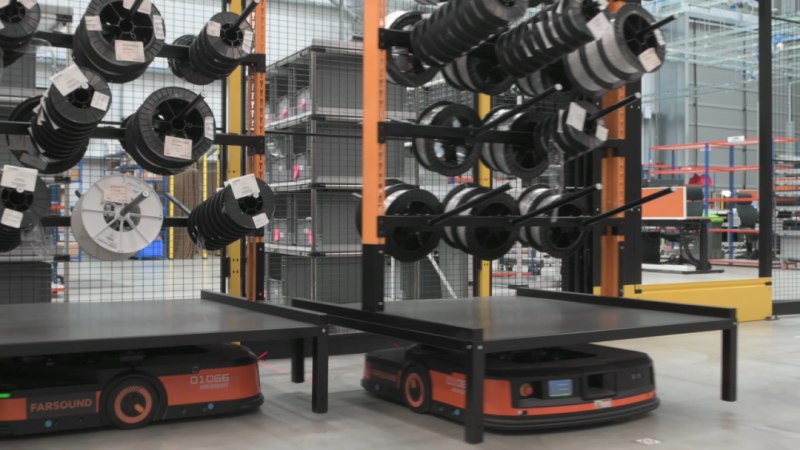 Farsound定制了多種貨架來滿足不同種類零部件的搬運(yùn)需求;同時(shí),海康機(jī)器人LMR可實(shí)現(xiàn)貨架的柔性適配。