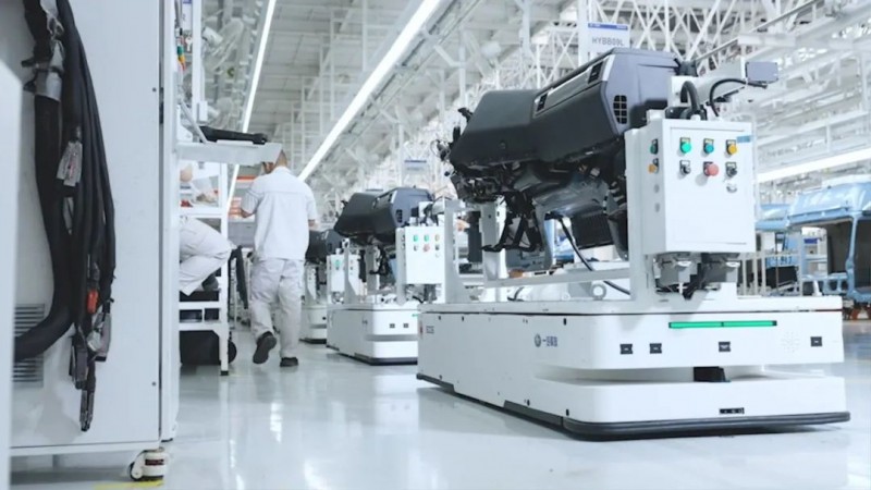 一汽解放踐行新發展理念,全面推進工廠智能化升級。自2021年起,一汽解放與海康機器人開啟深入合作,在J7整車智能工廠建立起一套完整的智慧物流配送體系,物料配送上線采用智能AMR和機械化自動輸送線,共計投入200余臺AMR,配送過程實現“零走動”。通過物流執行系統與AMR、RFID、配送車輛等進行集成,實現物料自動化收貨、貨到人分揀指示防錯、動態庫存管理等。