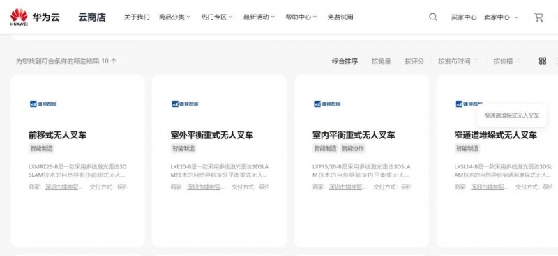 鐳神智能陸續(xù)將無人叉車系列產品、高性能激光雷達及行業(yè)應用解決方案上傳至商城,無論是企業(yè)用戶還是個人用戶,均可通過華為云商城享受到便捷的購買體驗,同質的售后服務及技術支持。