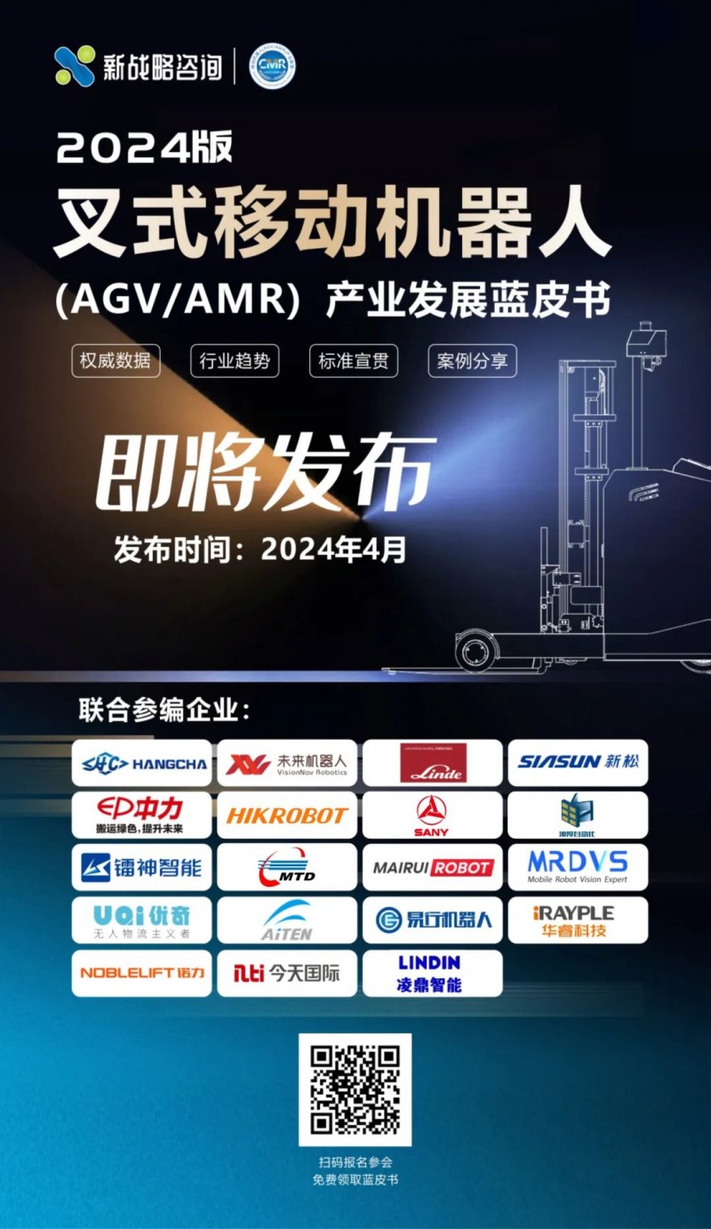 2024年,為了更好地探析當(dāng)前無人叉車市場最新發(fā)展情況及趨勢,推動無人叉車深入應(yīng)用,由CMR產(chǎn)業(yè)聯(lián)盟主編,杭叉智能、未來機器人、林德、新松、浙江中力、海康機器人、三一機器人、坤厚智能、鐳神智能、機科股份、邁睿機器人、邁爾微視、UQI優(yōu)奇、海豚之星、易行機器人、華睿科技、上海諾力智能、今天國際、凌鼎智能等企業(yè)聯(lián)合參編的《叉式移動機器人(AGV/AMR)產(chǎn)業(yè)發(fā)展藍(lán)皮書(2024版)》將在4月29日舉辦“第二屆全球無人叉車峰會”上重磅發(fā)布,參會人員可免費獲得紙質(zhì)版藍(lán)皮書一份,敬請期待!