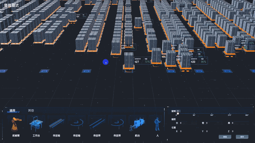 在某電子廠的自動化生產(chǎn)車間,??禉C器人數(shù)字孿生技術(shù)改善了傳統(tǒng)系統(tǒng)的局限性,實現(xiàn)全面展示工廠存儲庫位的實時運行狀態(tài),并與監(jiān)控視頻系統(tǒng)聯(lián)動,提供實時監(jiān)管功能,用戶可以及時了解倉庫的運作情況,及時調(diào)整和優(yōu)化倉庫管理策略。