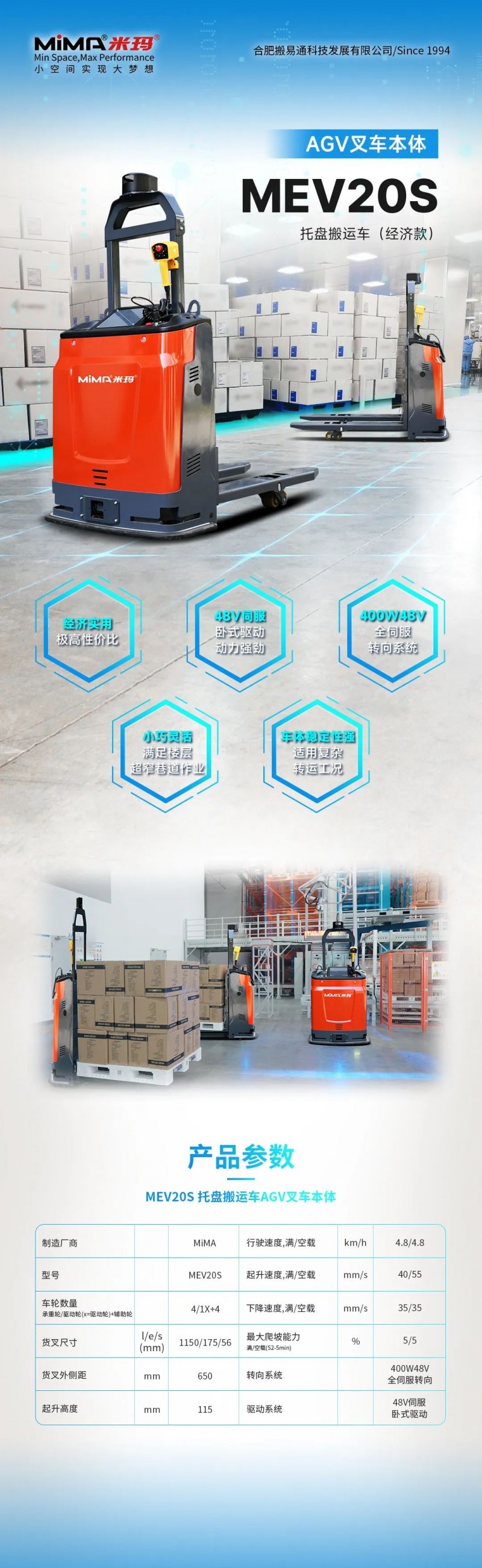 MiMA米瑪電動托盤搬運(yùn)車經(jīng)濟(jì)版-MEV20S,攜實(shí)車操作視頻重磅來襲!新一版本繼承原有搬運(yùn)車的優(yōu)勢功能——“核心參數(shù)不變,性能不減”,實(shí)現(xiàn)降本增效,智能升級,給消費(fèi)者帶來全新的“經(jīng)濟(jì)、高效、安全”的搬運(yùn)體驗(yàn)。托盤搬運(yùn)車的重量輕、體積小,更適合在狹窄的空間內(nèi)作業(yè),價(jià)格低,進(jìn)一步擴(kuò)大了應(yīng)用范圍。