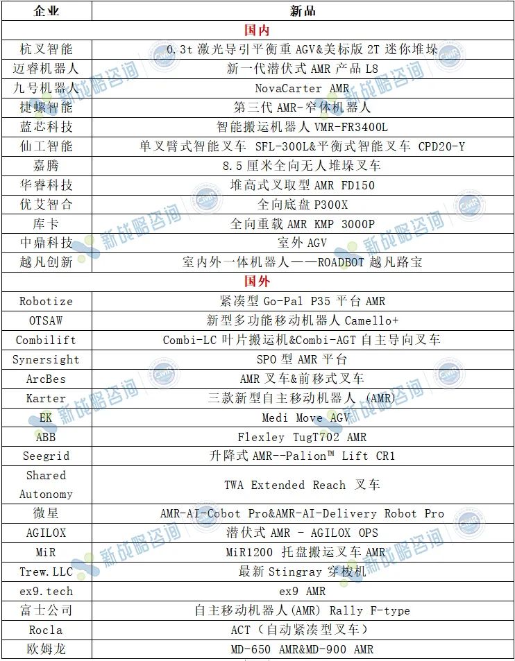 圖表:一季度國內外AGV/AMR企業新產品(根據公開信息整理,如有遺漏,請指正!)