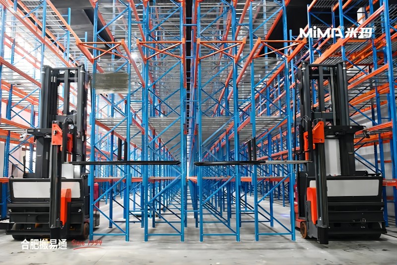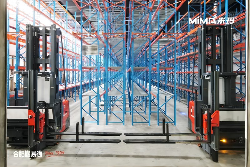這款MiMA雙深位人上型三向叉車MCC12,其產品設計和功能均達到了國際先進水平。獨特的雙深位伸縮貨叉設計,與MiMA人上型三向叉車的車體完美融合,使叉車能夠自如地在超窄巷道(VNA)中作業,輕松完成雙深位貨架后排貨物的精準存放與堆垛,極大地提高了倉庫存儲密度和貨物周轉率。