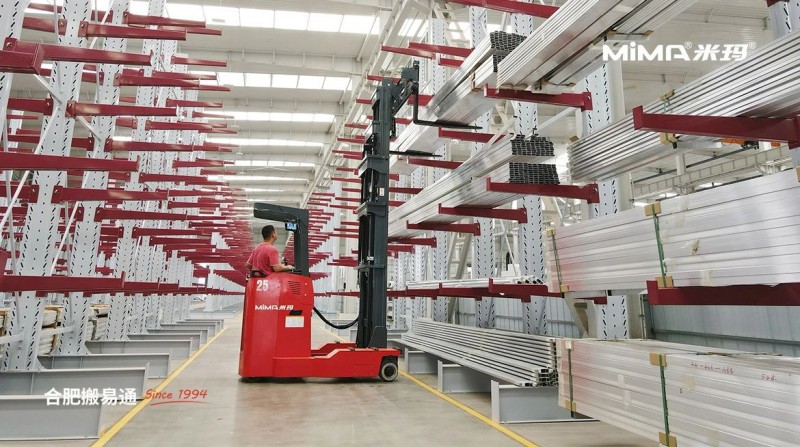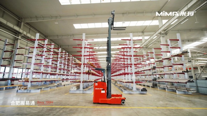 2、為了滿足長重物料的靈活搬運(yùn)需求,建議客戶采購并使用MiMA米瑪窄體全向叉車MQ25,這款叉車額定載荷2.5噸,擁有多種行駛模式,側(cè)行通道更小,能夠完美適配窄巷道作業(yè)環(huán)境。