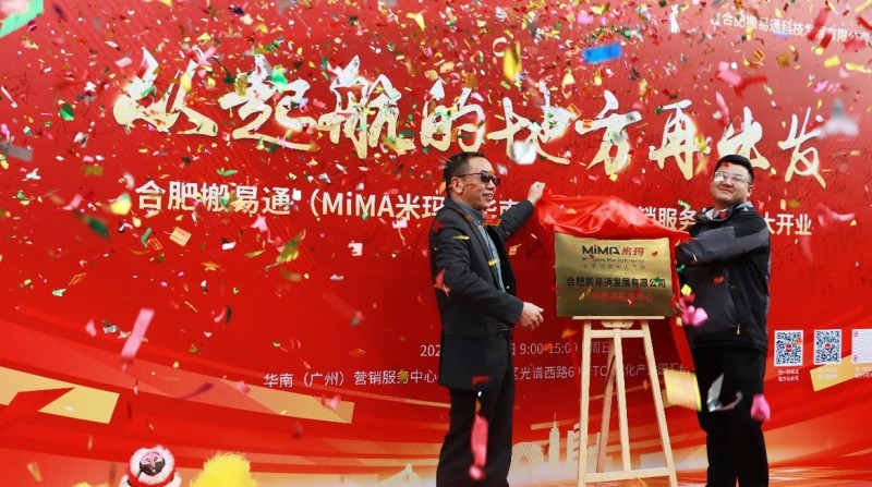開業典禮上,廣州營銷服務中心負責人侯杰與中叉網總經理胡揚波共同揭牌,宣布合肥搬易通(MiMA米瑪)華南(廣州)營銷服務中心正式開業。
