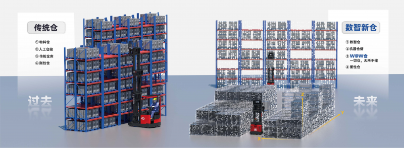“即把所有的倉儲進行了場景化分割,分成了工位堆、自件堆、料籠堆、料架堆、貨架堆,利用我們的智能堆高車系列產(chǎn)品、智能前移式等產(chǎn)品,致力于讓傳統(tǒng)倉庫的物料倉、人工倉儲變成數(shù)智倉、機器倉儲,讓倉儲更加柔性,讓一切可堆,無所不儲。”