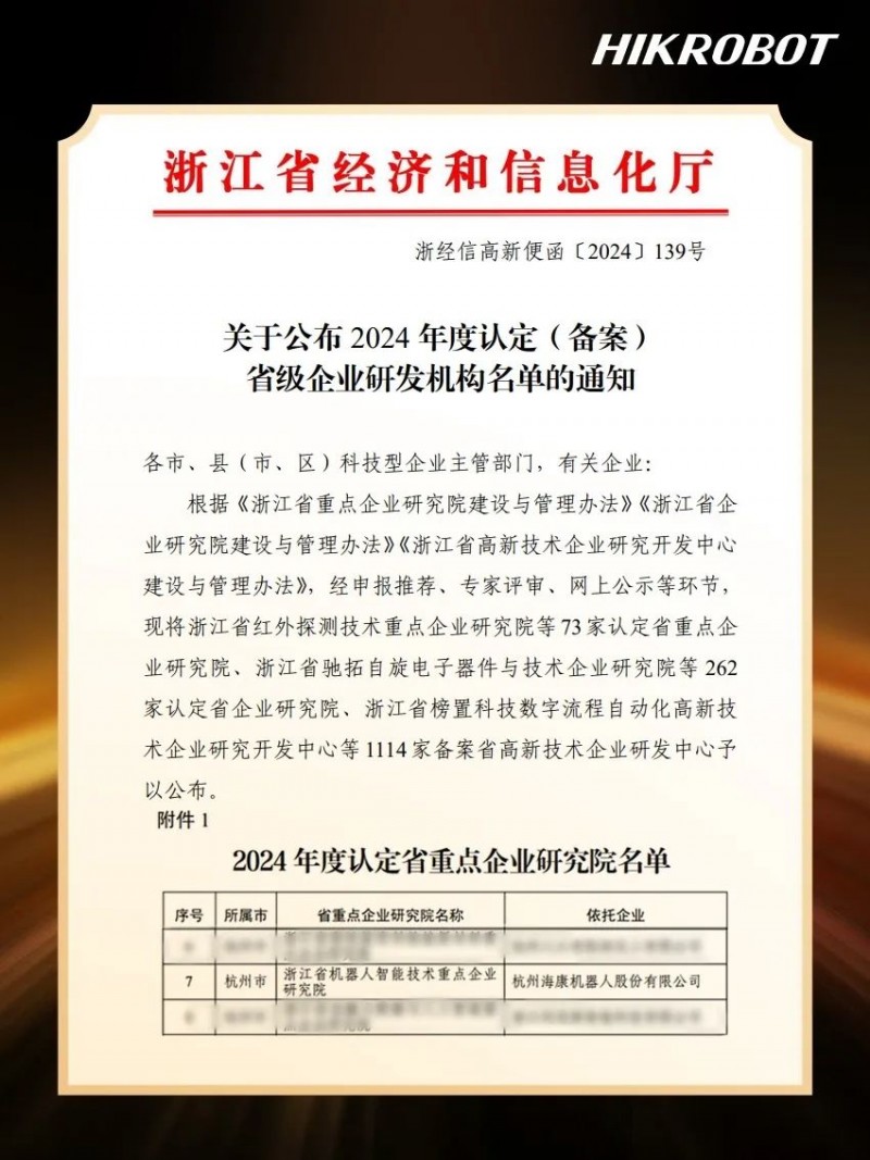 一路高歌,屢創佳績!近年來,??禉C器人在科技創新領域的卓越表現得到廣泛認可,2024年榮膺“國家重點軟件企業”、“全省工業大數據與機器人智能系統重點實驗室”、“2024浙江省科學技術進步三等獎”等眾多榮譽獎項。