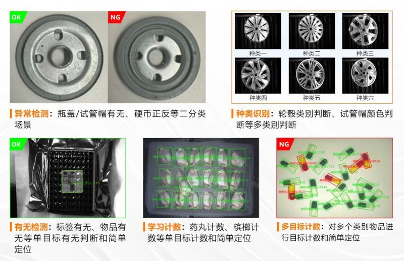 ??禉C器人全新推出的邊緣學習算法,覆蓋有無、正反、計數、分類等常規應用;在工具命名上按照場景化的命名方式,讓用戶面對各種需求時能精準找到自己需要的模塊,以更小樣本,更簡操作,打造視覺應用新范式。