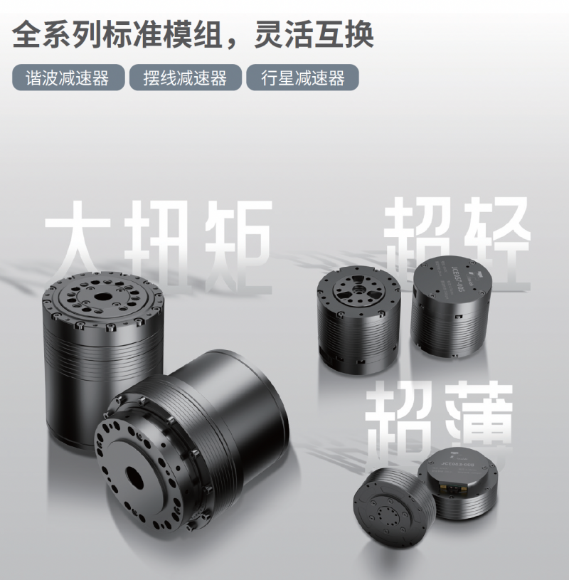 • 樣式超全面:本次全新發(fā)布徑向、軸向旋轉(zhuǎn)關(guān)節(jié)模組和直線關(guān)節(jié)模組,內(nèi)置擺線減速器、諧波減速器、行星減速器互換結(jié)構(gòu),部署超便捷,滿足市場所需的所有機(jī)器人技術(shù)路徑。