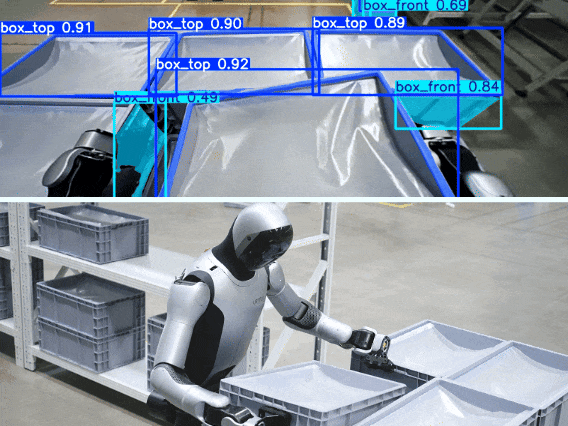 第一,自研視覺編碼器基座,構建精準環(huán)境感知。優(yōu)必選以ViT作為視覺編碼器原型,結合Co-DETR檢測頭,依托Object 365等開源數據在通用視覺任務上進行預訓練,并通過多階段模態(tài)對齊機制實現了視覺-語言模態(tài)的高效融合。最終,在優(yōu)必選機器人數據集上進行微調,顯著提升機器人在工業(yè)場景中對物體、障礙和操作上下文的識別能力,為復雜環(huán)境下穩(wěn)定可靠的多模態(tài)環(huán)境感知奠定了堅實基礎。