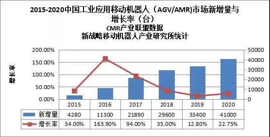 根據中國移動機器人(AGV)產業(yè)聯(lián)盟、新戰(zhàn)略移動機器人產業(yè)研究所的調研,2020年度中國市場新增工業(yè)應用移動機器人(AGV/AMR)41000臺,較2019年增長25.7%,市場銷售額達到76.8億元,同比增長24.4%。由此可見,2020年國內移動機器人行業(yè)盡管受到了疫情的影響,仍然保持了較好的整體增長態(tài)勢。