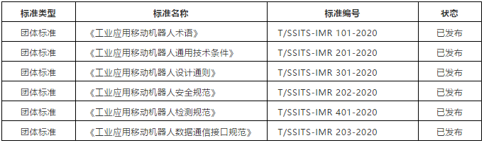 圖表:移動機器人產業(yè)聯(lián)盟制定的6項團體標準