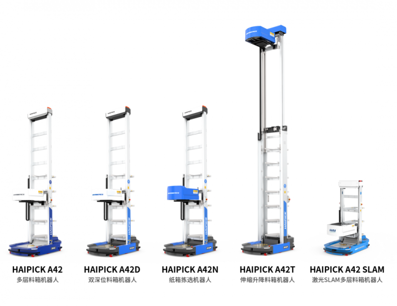 2020年,庫寶機(jī)器人從料箱機(jī)器人發(fā)展為箱式倉儲機(jī)器人系列產(chǎn)品,衍生出 HAIPICK A42(多層料箱機(jī)器人)、HAIPICK A42D(雙深位料箱機(jī)器人)、HAIPICK A42N(紙箱揀選機(jī)器人)、HAIPICK A42T(伸縮升降料箱機(jī)器人)、HAIPICK A42 SLAM(激光SLAM料箱機(jī)器人),針對客戶使用場景,提供全方位、定制化的解決方案。