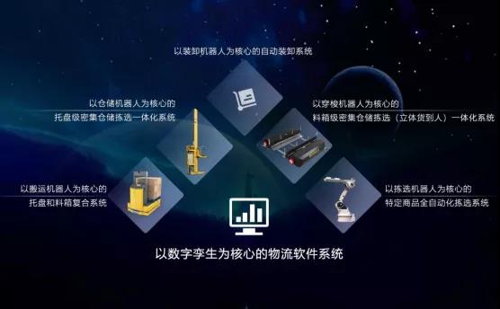 其中,以數(shù)字孿生為核心的物流軟件系統(tǒng)是整個智能倉儲物流自動化系統(tǒng)的大腦,其綜合運用精益管理、大數(shù)據(jù)、人工智能等技術(shù),通過嵌入式軟件、業(yè)務應用軟件、商業(yè)智能軟件,對倉儲、分揀、配送、管理、考核等進行全面管控。并能夠?qū)崿F(xiàn)動態(tài)建模、虛擬仿真、離線調(diào)試、3D-SCADA在線監(jiān)控、主動性運維、預防性維護、決策分析等高階應用。