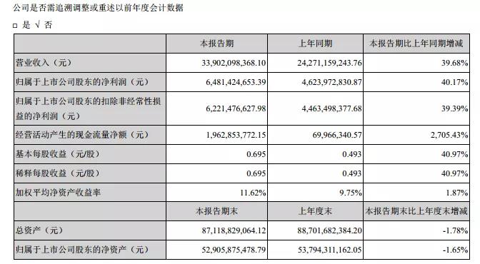 7月24日,??低暟l布2021年半年度報告。在報告中顯示:報告期內,公司實現營業總收入339.02億元,比上年同期增長39.68%;實現歸屬于上市公司股東的凈利潤64.81億元,比上年同期增長40.17%。公司2021年上半年整體毛利率為46.30%。