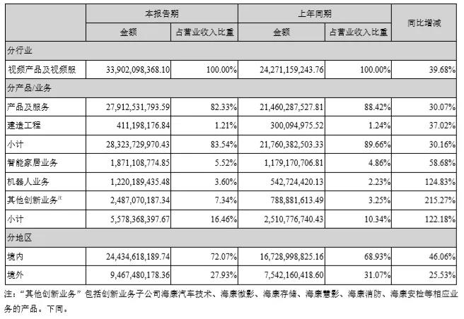 報告中主要營業收入組成如下,創新業務和機器人業務增長迅速,表現非凡。其中,??禉C器人實現營收12.2億,同比增長124.83%。