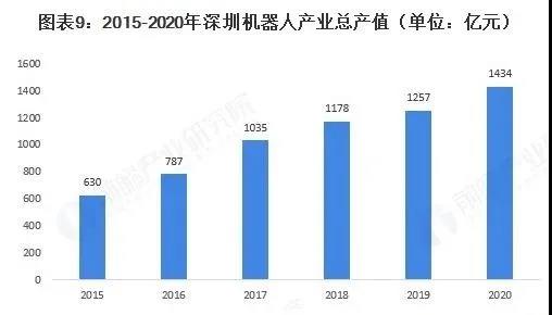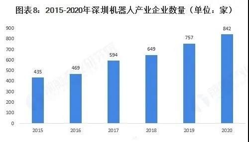 近年來,深圳機器人產(chǎn)業(yè)規(guī)模愈發(fā)龐大,2020年深圳市機器人產(chǎn)業(yè)總產(chǎn)值為1434億元,較2019年的1257億元增長14.08%,產(chǎn)值增速顯著回升,回歸發(fā)展快車道。深圳市機器人企業(yè)總數(shù)量達(dá)842家,較2019年的757家增長11.23%。