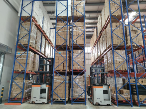 優(yōu)異的性能使得VDA116三向叉車自推出以來就受到了眾多用戶的青睞。某食品配送公司,每天有大量的物料需要進出倉庫,之前都是采用地堆的方式存儲。隨著公司業(yè)務(wù)的不斷擴大,原本的存儲方式已經(jīng)不能滿足他們現(xiàn)有的業(yè)務(wù)需求。只有將物料上貨架,在不改變現(xiàn)有倉儲面積的情況下,可以增加庫位??墒侨绻捎脗鹘y(tǒng)貨架堆垛方式,在庫位的增加上并沒有很大的優(yōu)勢,未來業(yè)務(wù)再擴張后,還將面臨儲位不足的問題??蛻舳喾奖容^后決定采用卓一的三向堆垛車來改造現(xiàn)在的倉庫。