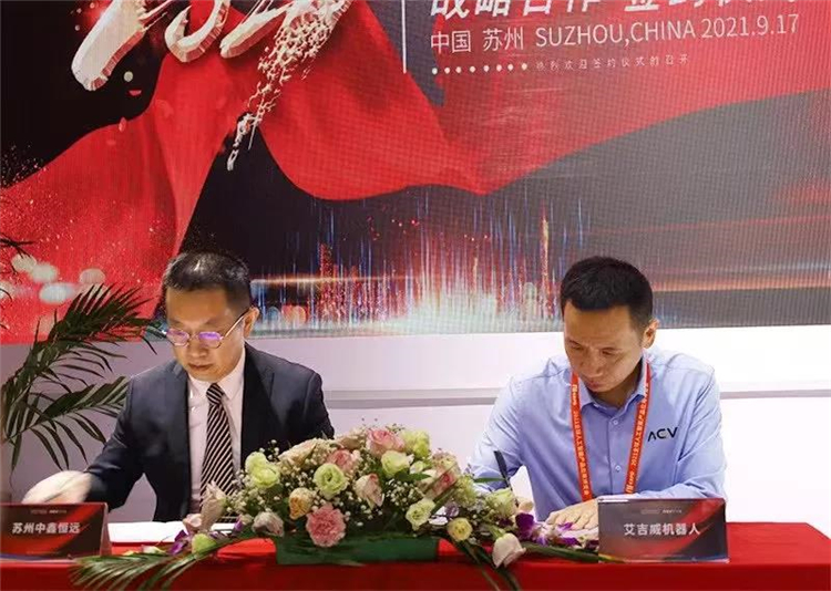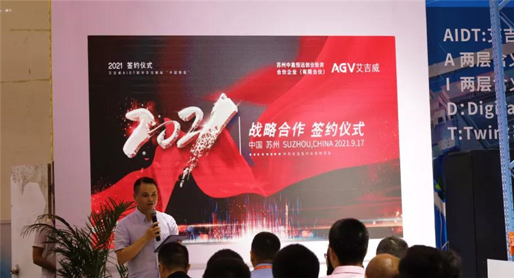 9月17日,蘇州艾吉威機(jī)器人有限公司(以下簡稱“艾吉威”)在2021全球人工智能產(chǎn)品應(yīng)用博覽會現(xiàn)場完成新一輪融資簽約。在蘇州政府領(lǐng)導(dǎo)、企業(yè)合作伙伴、各行業(yè)精英代表及知名媒體的共同見證下,本輪投資方華鑫證券與中鑫資本代表孔勇軍先生、官子安先生,艾吉威機(jī)器人創(chuàng)始人劉勝明先生、聯(lián)合創(chuàng)始人司秀芬博士出席簽約儀式并鑒約。