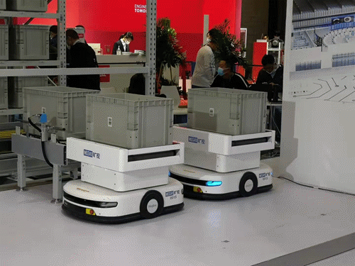 基于第四代架構(gòu)平臺“智能基座”的潛伏、移載、叉取等全系列AMR(移動機(jī)器人)新品,以及AI深度學(xué)習(xí)算法加持、全流程可視化追溯的機(jī)器視覺高效讀碼方案。