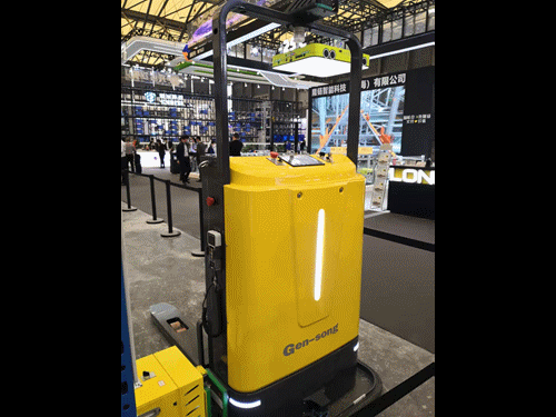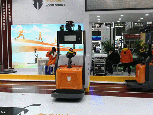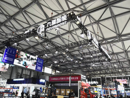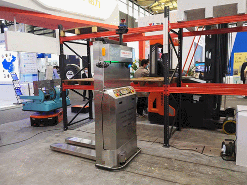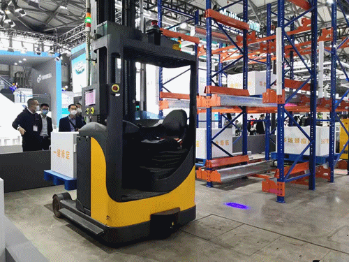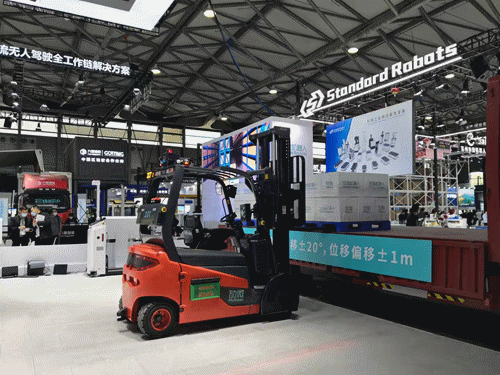 系列無人叉車產(chǎn)品,包括堆高式、平衡重式無人叉車等,并現(xiàn)場演示了月臺貨車裝卸方案。