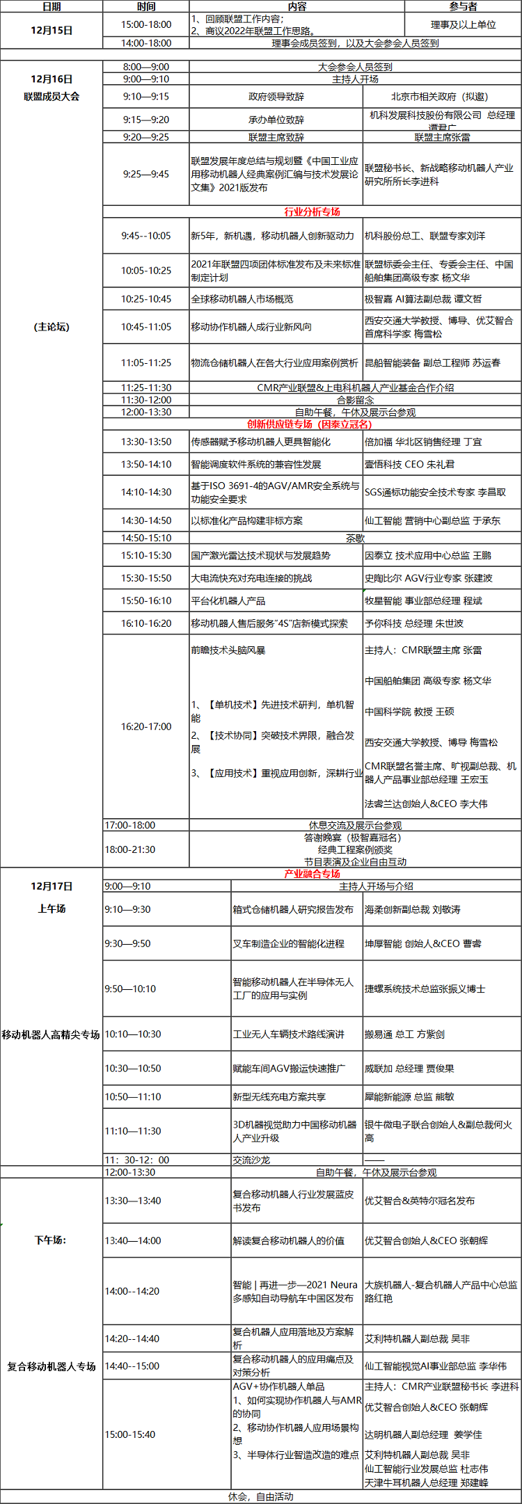 12月15-17日,由中國(guó)移動(dòng)機(jī)器人(AGV/AMR)產(chǎn)業(yè)聯(lián)盟主辦的“2021 中國(guó)移動(dòng)機(jī)器人(AGV/AMR)行業(yè)發(fā)展年會(huì)”將在北京舉行,敬請(qǐng)期待!CMR產(chǎn)業(yè)聯(lián)盟年會(huì),是一年中最為重要的行業(yè)會(huì)議,會(huì)聊宏觀經(jīng)濟(jì)的走勢(shì),做到自上而下的研判;會(huì)討論投資策略,以及風(fēng)險(xiǎn)規(guī)避;會(huì)聊產(chǎn)業(yè)發(fā)生的趨勢(shì)變化、探討行業(yè)問(wèn)題等。年會(huì)是打開(kāi)視野、提升認(rèn)知、抓基調(diào)、定主線的重要時(shí)刻。期待每一位與會(huì)嘉賓的真知灼見(jiàn)。
