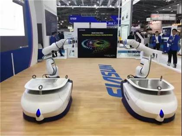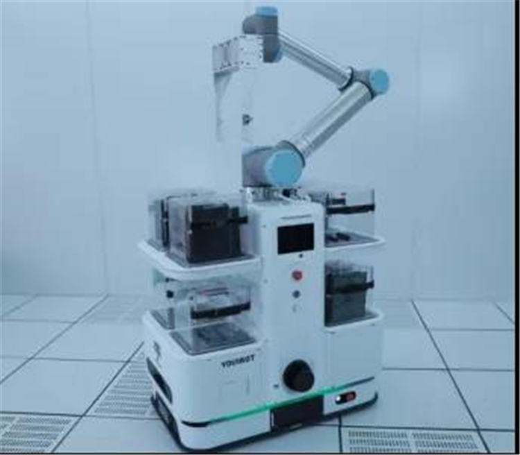 某半導體企業從2015年開始陸續應用了沈陽新松機器人自動化股份有限公司的復合移動機器人,復合移動機器人分別應用于工廠的加工和物流區域,主要用于半導體材料的搬運,通過機器手臂將物料自動抓取到各加工設備中,來實現物料的自動轉運。移動機器人本體及協作手臂均由新松機器人公司提供。