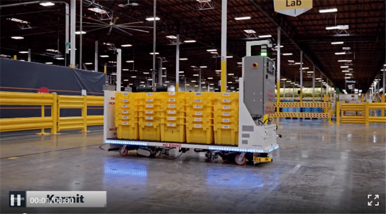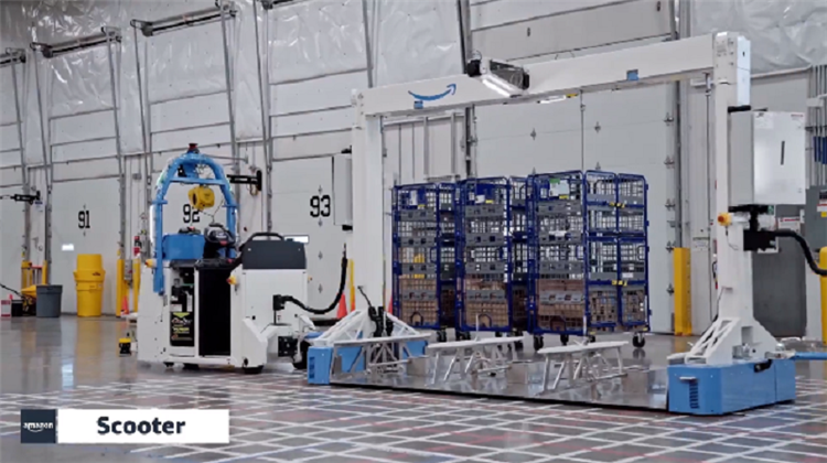 Kermit 相比于 Scooter 體型更小,會(huì)跟隨地面特制的布線運(yùn)行,來(lái)運(yùn)送儲(chǔ)物筐。亞馬遜表示,今年至少將會(huì)在北美的十幾個(gè)站點(diǎn)部署 Kermit,同時(shí)也將嘗試著對(duì) Scooter 進(jìn)行極少量的部署運(yùn)作。