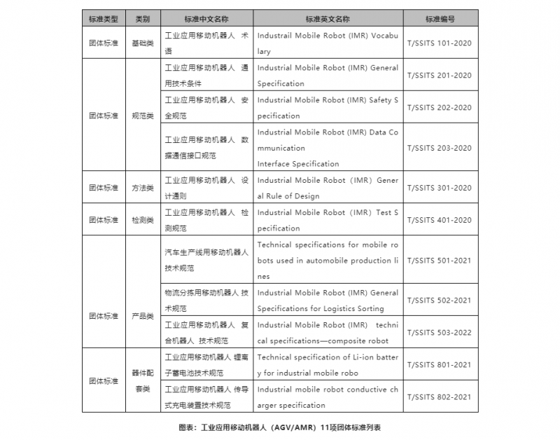 CMR產(chǎn)業(yè)聯(lián)盟自成立以來一直致力于推動(dòng)行業(yè)的規(guī)范化發(fā)展,截至目前,聯(lián)盟已經(jīng)制定了11項(xiàng)團(tuán)體標(biāo)準(zhǔn),2022年,聯(lián)盟還將制定《工業(yè)應(yīng)用移動(dòng)機(jī)器人 無人叉車技術(shù)規(guī)范》、《工業(yè)應(yīng)用移動(dòng)機(jī)器人 箱式倉儲(chǔ)機(jī)器人技術(shù)規(guī)范》、《工業(yè)應(yīng)用移動(dòng)機(jī)器人與其調(diào)度系統(tǒng)數(shù)據(jù)接口規(guī)范》三項(xiàng)團(tuán)體標(biāo)準(zhǔn)。
